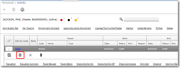 3. After you have loaded the crew profile record, click the Activity tab. Click an activity record that you want to delete. 4. The selected crew member's activity details will then be displayed. Click Delete. Click Yes to confirm your intention to delete the selected record and it will then be removed.