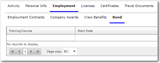 3. After you have loaded the crew profile record, click the Bonds sub tab under the Employment tab.