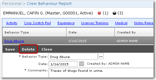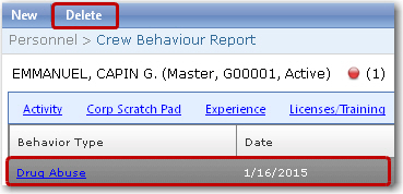 This feature allows you to delete a previously entered crew behaviour report for a crew member.