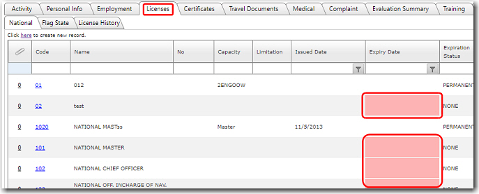Using this feature you can check whether a crew member's licenses have expired or are nearing expiry.
