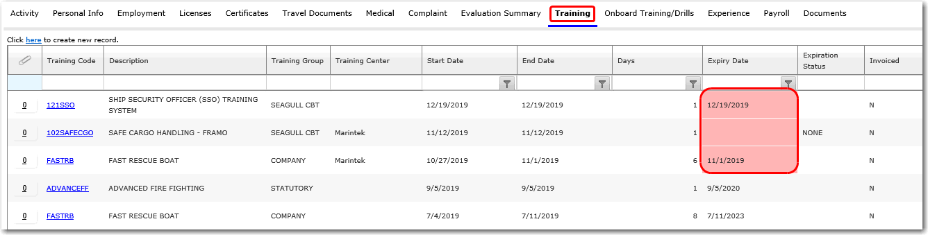 Using this feature you can check whether a crew member's training certificates have expired or are nearing expiry.