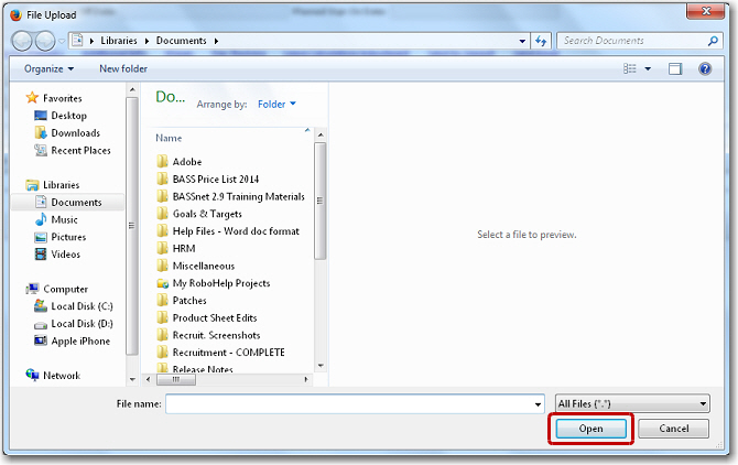 Note: File upload will fail if the file format is not permitted and/or the file is too large (exceeds the maximum limit allowed).