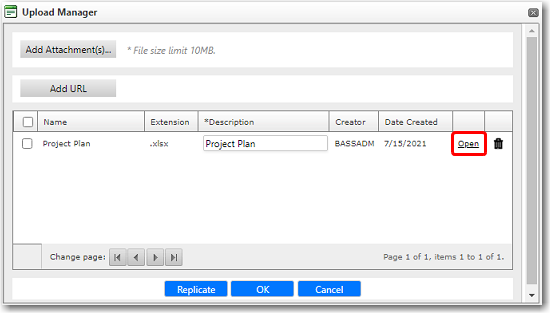 To attach files to a crew profile: 1. From the HR Manager main menu, click Profiles under the Personnel menu. 2. Ensure that the crew profile to which you want to add attachments has been loaded. Use the Personnel search field to search and select the relevant crew profile. Note: To use a previously saved list of crew, click the search icon in the Personnel search field to use the Personnel List feature on the Simple Search window. Use the drop-down function to select and load a list from the Personnel List section and click a crew member from the Search Result section to view his profile. 3. From under the relevant tabs on the Profiles screen, select a record to which you want to add attachments and you will be taken directly to the tab screen; for example, clicking a record from under the Activity tab will take you to the Activity screen. On this screen, click in the Attachment column to launch the Upload Manager pop-up window for the record selected. Note: Except for Travel Documents where attachments can be directly uploaded under the Travel Documents tab on the Profiles screen, all other attachments on the Profiles screen are for viewing purposes only and cannot be added or deleted. 4. In the Upload Manager pop-up window, click the Add Attachment(s) button. 5. The File Upload window is displayed. Here, browse through your directories and select the file that you wish to upload and then, click Open. (You can upload up to a maximum of 10MB in file size.) 6. The file will be uploaded and displayed in the Upload Manager's list of records. To view the file, click Open. You can also click the Add URL button to insert relevant or important links. 7. Click OK to upload the file. You can access all uploaded attachments for a record from the Upload Manager pop-up window. All attachments, previously uploaded to this crew profile record, will be listed. Note: If you want to delete this file, click the trash bin icon next to the file in the Upload Manager. This removes the file from the list.