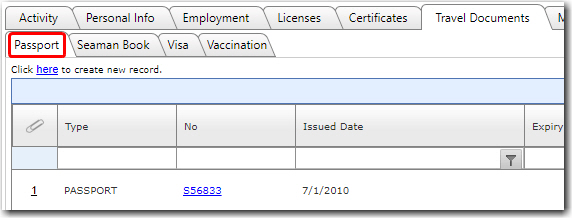 Seaman Book/ Visa/ Vaccination sub tabs).