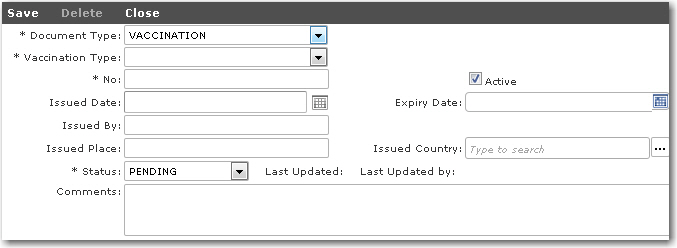travel document you want to log for the crew member. |