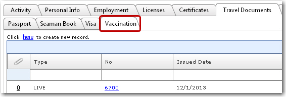 a new vaccination record for a crew member: