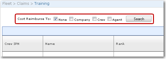 2. The Training screen will be displayed. In the Cost Reimburse To field, use the check boxes to select to whom the training claims need to be reimbursed. Click Search.
