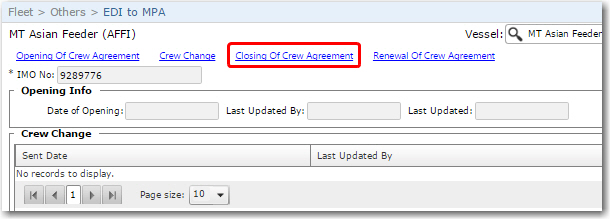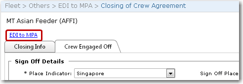 Screen Navigation: Fleet - Others - EDI to MPA - Closing of Crew Agreement link