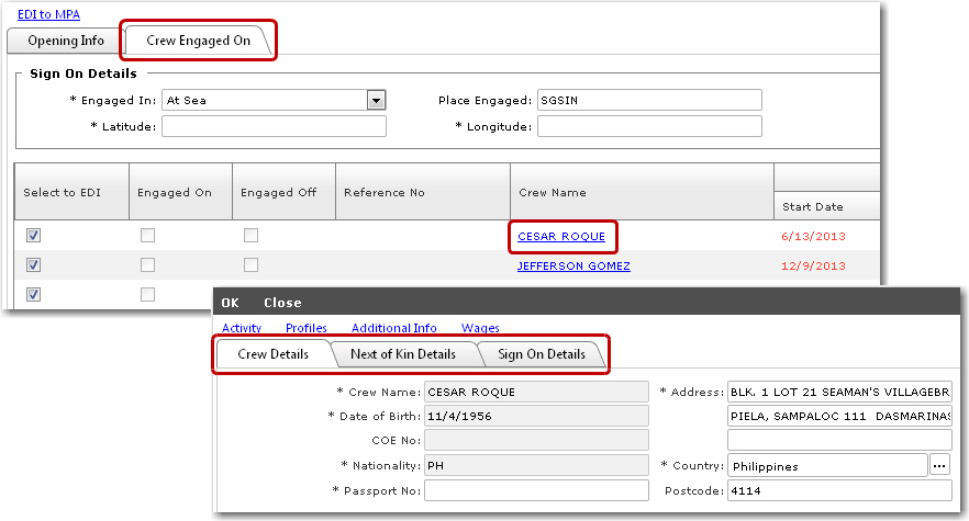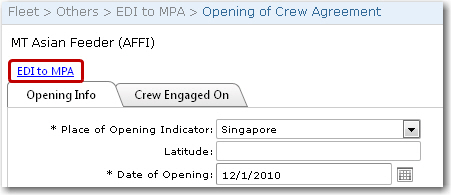 Screen Navigation: Fleet - Others - EDI to MPA - Opening of Crew Agreement link