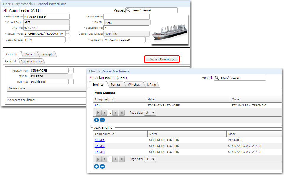 Machinery screen of the vessel created will be displayed.