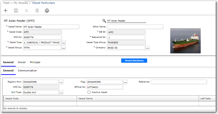 to create a new Vessel record. Enter the main information of the