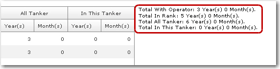 of years/months of experience working onboard Tankers.