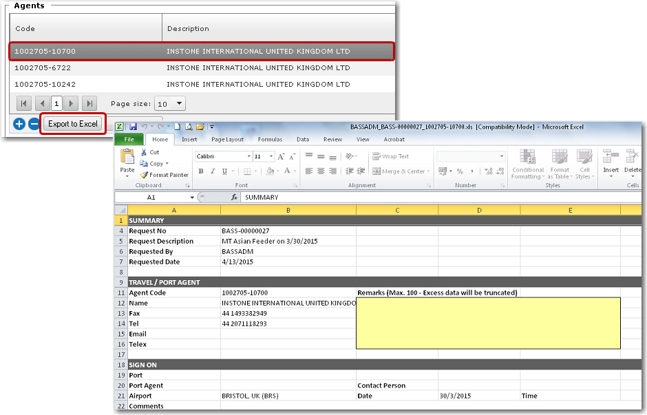 Note: Crew members travelling in the same travel pax can have different departure (for Sign On Travel) or return (for Sign Off Travel) airports/dates/time. So when the travel particulars are exported to Excel, the travel particulars of each crew member will be listed in individual tabs in the Excel sheet.