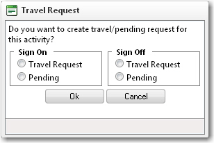 5. Click Save after you have completed your entries. 6. A Travel Request pop-up window will then appear asking you if you want to create travel requests/pending travel requests for the activity. Select the relevant radio buttons to make the travel requests and click OK. 7. The travel request that you have just created will now be available on the Requests screen in the Travel module (Travel - Requests). Proceed to the Requests screen in the Travel module and, under the Travel Request tab, click the travel request record that you just created. The Travel Request screen will then be displayed. Proceed to the Update a Travel Request topic to insert/edit the details of the travel request.