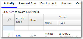 To create a travel request for a crew member when creating a new activity: 1. From the HR Manager main menu, click Profiles under the Personnel menu. 2. Ensure that the crew profile for which you want to create a travel request has been loaded. Use the Personnel search field to search and select the relevant crew profile OR use the Personnel List feature to load a previously saved list of crew and then select the crew member from this list. Then click a record from the Search Results section to view the profile. 3. After you have loaded the crew profile record, click the Activity tab. Note: You can only create travel requests when creating new activities for activities that have the Travel check box selected in the Activity Register. 4. Click the 'Click here to create new record' link to create a new activity record. On the Activity screen, enter information in the following fields: